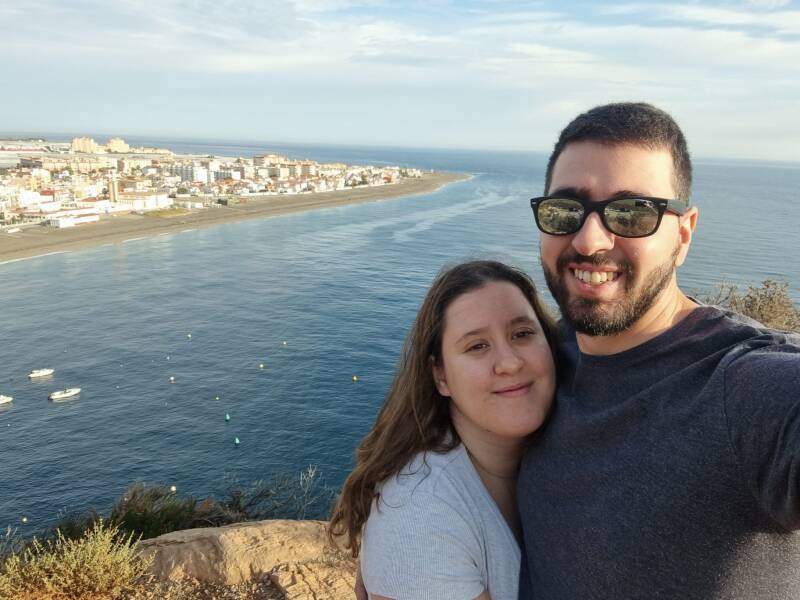Foi um dia de descanso da viagem, por isso decidimos explorar a cidade próxima ao hotel. Almuñécar é uma cidade costeira com uma zona marginal muito bonita, mas como era outubro, muitos bares e restaurantes estavam fechados. A cidade tem uma praia de areia preta e a água estava fria nesta época do ano, mas mesmo assim não conseguimos resistir a molhar os pés.