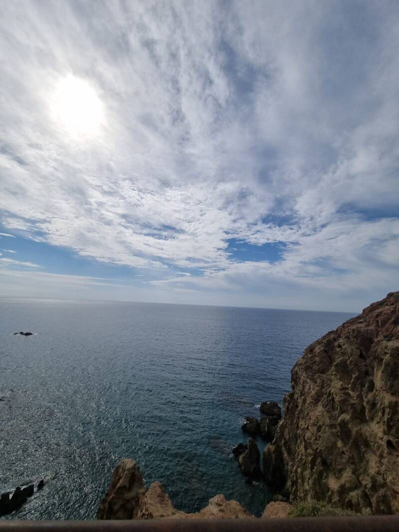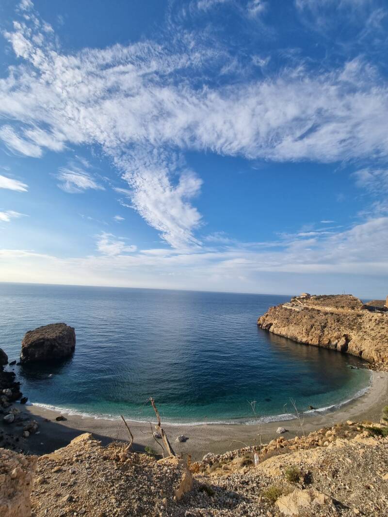 Bem cedo, partimos rumo ao Cabo de Gata, um parque natural perto de Almeria. Com a ideia de fazer um piquenique, paramos num Lidl para comprar os mantimentos e seguimos viagem. No caminho, passamos por um local que nos marcou, não pela positiva: um verdadeiro mar de plástico. Uma área vasta, coberta por estufas brancas que se estendem por 971 quilómetros quadrados. É uma paisagem que não passa despercebida e nos fez refletir, mas seguimos em frente até o nosso destino.