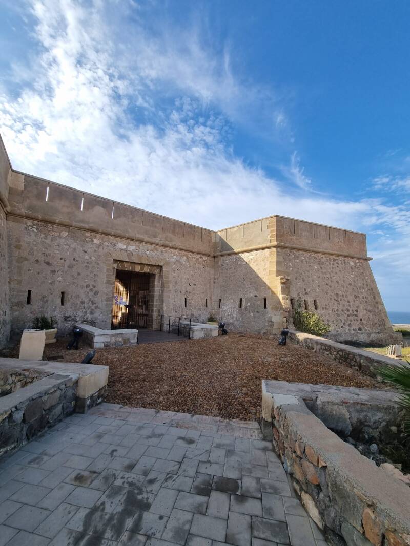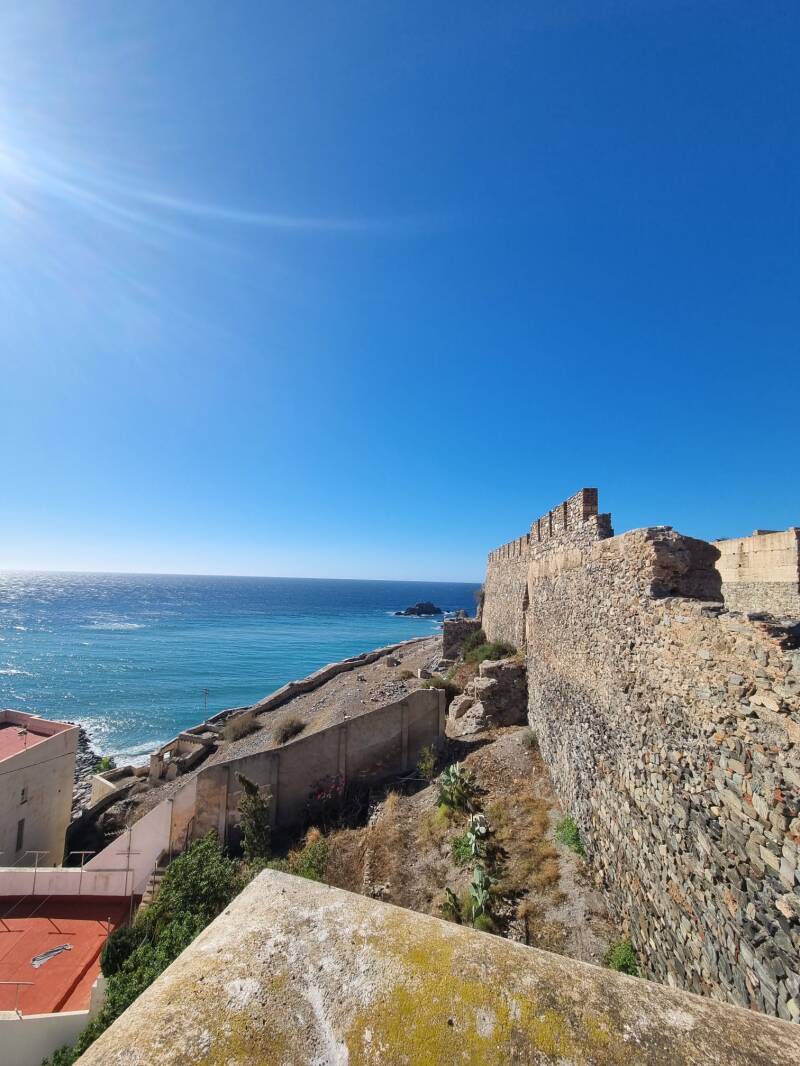Enquanto estávamos na praia, avistamos no cimo da colina um castelo e decidimos ir visitá-lo. A subida até o Castillo de San Miguel (entrada 3€ por pessoa) é curta, mas vale muito a pena. O castelo, de origem muçulmana, guarda vestígios da presença romana em seu interior. Embora pequeno, o castelo tem muita história para contar e, mesmo sem ser planejada, essa visita inesperada acabou por ser uma das mais memoráveis da nossa viagem.