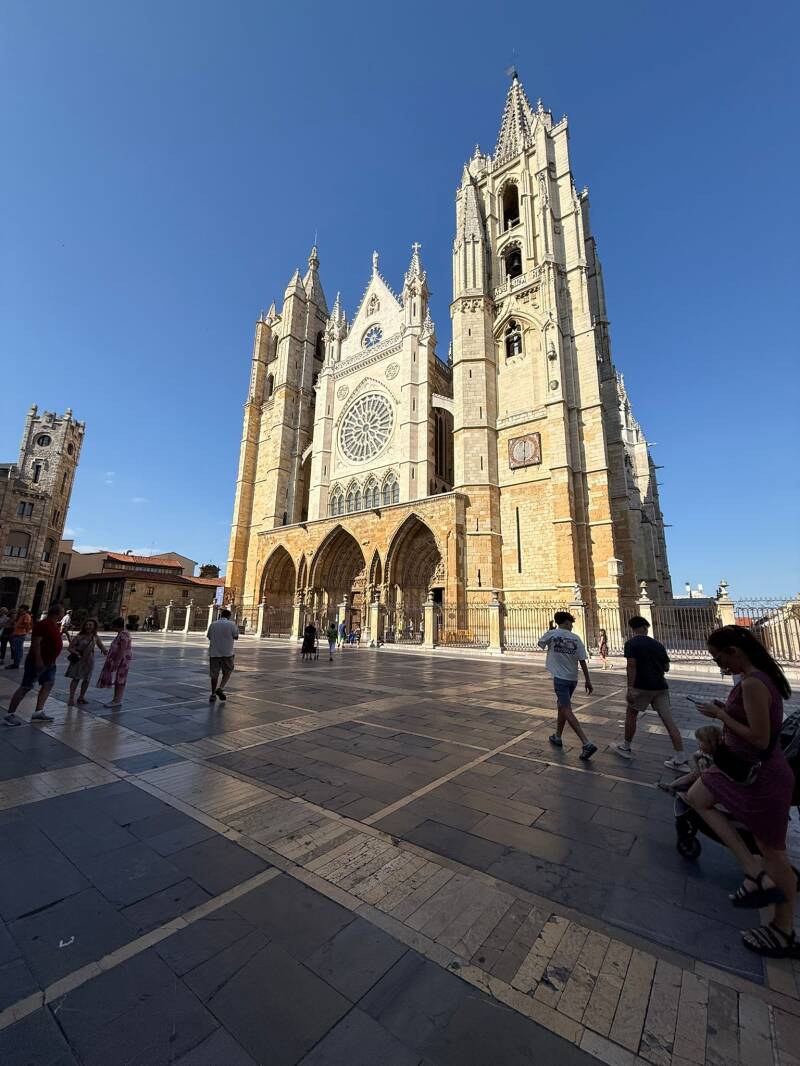 Seguimos depois para a imponente Catedral de León, que impressiona não só pela sua dimensão, mas também pela leveza e pela luz que entra através dos vitrais. Passear pelo centro histórico faz-se muito bem a pé, ainda para mais com pouca confusão, o que tornou a visita ainda mais agradável. Aproveitámos também para visitar algumas lojas locais e foi aqui que acabámos por comprar o famoso queijo azul que já quase tinha vindo na nossa cabeça desde Cangas de Onís.